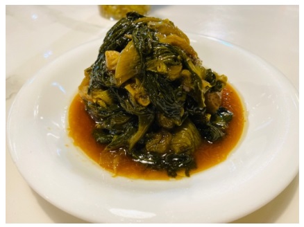 烤菜年糕是寧波的特色傳統(tǒng)美食,烤菜不是烤制而成,通俗點(diǎn)來(lái)說(shuō)就是青菜紅燒,這個(gè)燒法不知道是不是只有我們寧波人這么吃?這個(gè)菜的靈魂在于糖多一點(diǎn),大頭菜煸炒后加上糖和醬油的調(diào)味,最后淋點(diǎn)芝麻油,濃稠的醬汁帶著烤菜的香氣,口感像腌菜,又隱隱透著甜味,總之特別好吃。