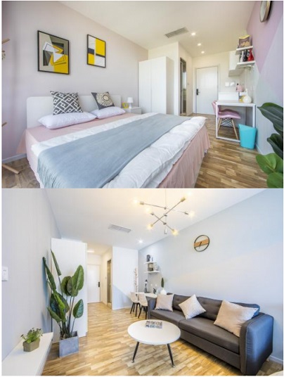 奇點中心C座同步配套昌發(fā)展旗下“回+理想鄉(xiāng)青年公寓”,公寓裝修風格簡約明快,家具、家電、生活用品等一應俱全,全程提供管家式VIP服務,就近解決人才居住難題。