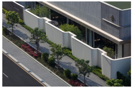 舉目望去,房屋外立面的柔和起伏、地磚的紋路樣式,都是海洋生活美學(xué)送入日常生活的具象化