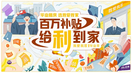 據(jù)項目負責(zé)人介紹,2022年就曾舉辦過“畢業(yè)租房選我愛我家”活動,市場反響強烈,受到了社會各界的廣泛好評。今年的“畢業(yè)租房選我愛我家”活動以“百萬補貼,給利到家”為主題,在借鑒去年成功經(jīng)驗的基礎(chǔ)上,根據(jù)年輕人的喜好和需求做了升級迭代。4月13日至8月31日活動期間,新、老用戶均可在我愛我家官方網(wǎng)站、官方APP及小程序的指定入口進入活動主會場,報名參與;顒臃譃椤皥竺榻蛸N”“做任務(wù),抽大獎”“畢業(yè)選不停,特價租好房”三個板塊,送出的獎項福利有1000元、500元、100元相寓租房補貼、5000元大額相寓補貼券和指定城市特價好房等,對于畢業(yè)生都有著不小的吸引力。除了優(yōu)惠補貼之外,活動延續(xù)了去年跨界聯(lián)合幫扶畢業(yè)生的思路,為畢業(yè)生準備了京東E卡、順豐優(yōu)惠券、移動優(yōu)惠券、優(yōu)酷VIP等實用好禮。