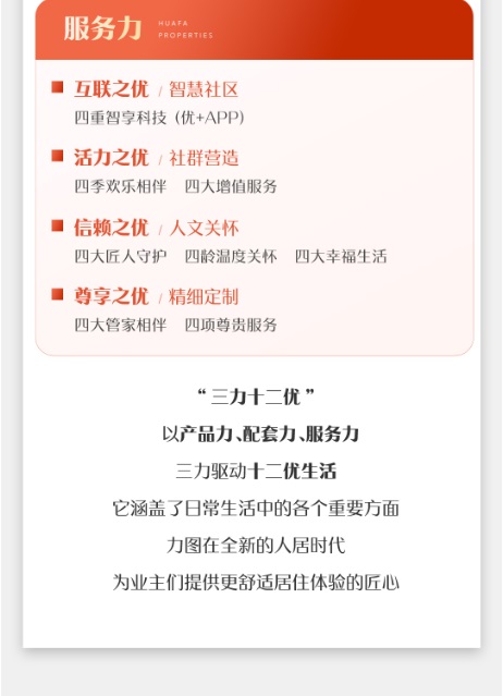 從1.0到5.0,華發(fā)股份優(yōu)+產(chǎn)品體系的更新既包含著華發(fā)對(duì)經(jīng)典的傳承,也是華發(fā)作為“長(zhǎng)期主義”踐行者,在貼合新時(shí)代人居需求而做出的煥新升級(jí)。華發(fā)股份優(yōu)+產(chǎn)品體系5.0重點(diǎn)圍繞“居民因生活方式變遷所產(chǎn)生的人居新需求”,實(shí)現(xiàn)了多維度的迭代。華發(fā)以產(chǎn)品力、服務(wù)力、配套力為底盤,通過推出全新的“三力十二優(yōu)·優(yōu)+質(zhì)感生活體系”,打造產(chǎn)品與自然、人文的互動(dòng)關(guān)系,從而引領(lǐng)新時(shí)代城市生活方式。未來(lái),華發(fā)也將依托優(yōu)+產(chǎn)品體系5.0,繼續(xù)從長(zhǎng)期主義出發(fā),致力于打造更多新時(shí)代精品人居,為支持華發(fā)、深愛華發(fā)的華發(fā)家人創(chuàng)造更美好的居住生活體驗(yàn)。