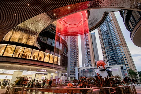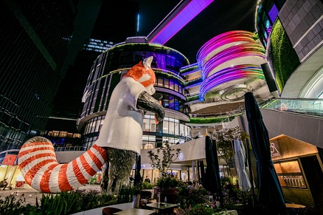 位于成都知名交子公園商圈核心區(qū)域的成都招商大魔方,是去年全新開業(yè)的項目,也是招商商管在成都打造的第一個特色商業(yè)項目。項目總建筑面積約112萬平米,涵蓋演藝中心、城市級購物中心、超甲級寫字樓、豪華公寓、朗廷酒店、高端住宅六大業(yè)態(tài),以“城市潮玩新引力”為定位,設(shè)置了科技城市生長樹、亞馬遜森林瀑布、魔方之心、巨幕裸眼3D屏、空中天際跑道等“五大沉浸式特色空間場景”。