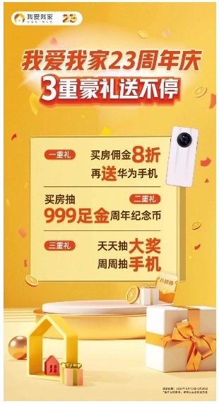 5月15日,我愛我家迎來了23歲生日。為回饋一路相伴而行的廣大消費(fèi)者,“我愛我家23周年慶,三重豪禮送不!被顒(dòng)在司慶當(dāng)天正式全面開啟,覆蓋北京、天津、上海、蘇州、杭州、南京、無錫、鄭州、常州和太原十個(gè)城市。