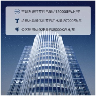 華遠在改造建設過程中,將“雙碳”節(jié)能技術充分應用到項目空調、弱電、給排水、電氣和智能化等系統(tǒng)中,采用高效制冷機組,冷熱源末端優(yōu)化控制、中水系統(tǒng)再利用、照明系統(tǒng)優(yōu)化等方式,通過群智能控制系統(tǒng)實現(xiàn)整體系統(tǒng)節(jié)能降碳運行。因此,北京金融科技中心較同級辦公樓宇可實現(xiàn)大幅節(jié)能指標優(yōu)化效果。