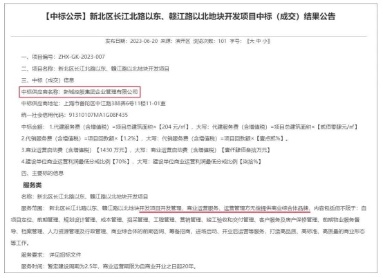 新城地產(chǎn)中標(biāo)新北春江街道的春江醫(yī)院南地塊,負(fù)責(zé)長(zhǎng)江北路以東、贛江路以北地塊開(kāi)發(fā)項(xiàng)目開(kāi)發(fā)管理、商業(yè)運(yùn)營(yíng)服務(wù)、運(yùn)營(yíng)管理方無(wú)償提供商業(yè)綜合體品牌等。