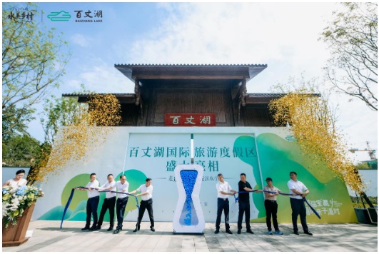 百丈湖坐落于雅安市名山區(qū)蒙頂山東麓,自然環(huán)境優(yōu)美,氣候溫潤宜人,約3200畝湖面周圍群峰擁翠、水趣盎然。湖區(qū)距成都約93公里,G318國道等多條干道均可直達。四川省濱水城鄉(xiāng)發(fā)展有限責任公司以戰(zhàn)略眼光洞悉百丈湖旅度價值,依托百丈湖良好的地理區(qū)位和農(nóng)旅資源,以百丈湖水環(huán)境綜合治理與利用為基礎(chǔ),以蒙頂山國家茶業(yè)公園為本底,規(guī)劃總面積約15136畝,開始著力打造百丈湖國際旅游度假區(qū)項目。2023年6月10日,隨著項目入口區(qū)整體建設(shè)初步呈現(xiàn),百丈湖國際旅游度假區(qū)(以下簡稱“百丈湖”)迎來盛大亮相,“走進湖山,邂逅濱水生活”亮相系列活動同步開啟。