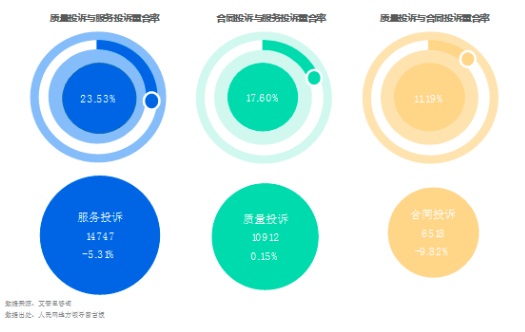 2023年第二季度,質(zhì)量投訴與服務(wù)投訴重合率23.53%,較去年同期下降5.91%;合同投訴與服務(wù)投訴重合率17.60%,較去年同期下降6.20%;質(zhì)量投訴與合同投訴重合率為11.19%,較去年同期下降17.30%。