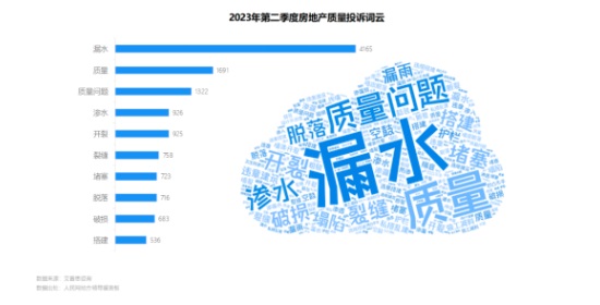 2023年第二季度,人民網(wǎng)地方領(lǐng)導(dǎo)留言板共收到房地產(chǎn)投訴約3.00萬起,與去年同期相比下降0.45%,較上季度增長(zhǎng)25.59%。本季度值得關(guān)注的投訴事件有:青島市龍湖昱城房屋質(zhì)量差、漏雨嚴(yán)重。