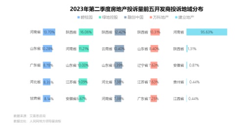 圖13:2023年第二季度房地產(chǎn)投訴量前五開發(fā)商投訴地域分布