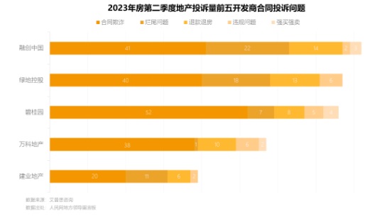 5.2 碧桂園、綠地控股、融創(chuàng)中國(guó)、萬科地產(chǎn)、建業(yè)地產(chǎn)主要投訴問題