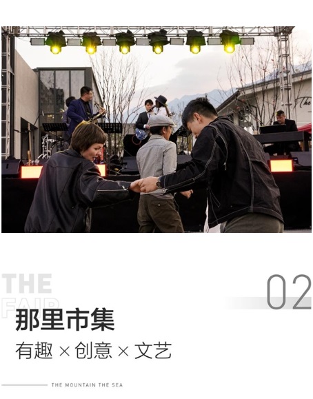 藝術(shù)是對(duì)生活的濃縮與提煉,而生活中的美學(xué)精神和想象力,又將藝術(shù)還原成更鮮活的具象。那山那海從“藝術(shù)家的心故鄉(xiāng)、文化界的磁力場(chǎng)“角度出發(fā),以活潑的街巷、豐盛的公共場(chǎng)所和鮮明的藝文空間來鏈接美好生活,讓街頭策展、行為藝術(shù)、話劇舞蹈、音樂表演等藝術(shù)活動(dòng)走進(jìn)小鎮(zhèn)日常。在項(xiàng)目建設(shè)之初,那山那海便創(chuàng)立了以“那生活”、“那藝術(shù)”為主題的社群活動(dòng),將天馬行空的創(chuàng)造力灌注到日常生活的細(xì)節(jié)中,營(yíng)造“藝術(shù)化生活、生活化藝術(shù)”。