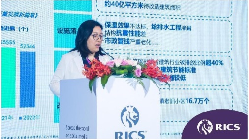 圖 | 落基山研究所董事郝一涵帶來主旨演講:“聚焦城市更新與舊改工業(yè)4.0背景下如何實(shí)現(xiàn)凈零碳建筑改造”