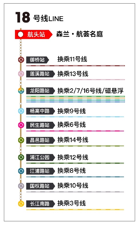 18號(hào)線被稱為浦東南北新動(dòng)脈,直通花木-龍陽路副中心、便捷聯(lián)系世紀(jì)大道、陸家嘴和楊浦濱江,2站路即可換乘13號(hào)線/2號(hào)線去張江,無論到市區(qū)還是浦東重要城市節(jié)點(diǎn)都比較方便,名副其實(shí)的“換乘王”。