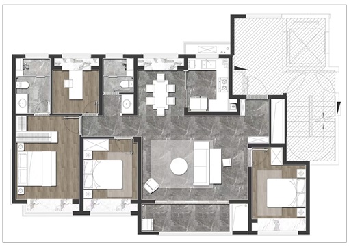 主臥套房設(shè)計(jì),保障私密性與舒適性;