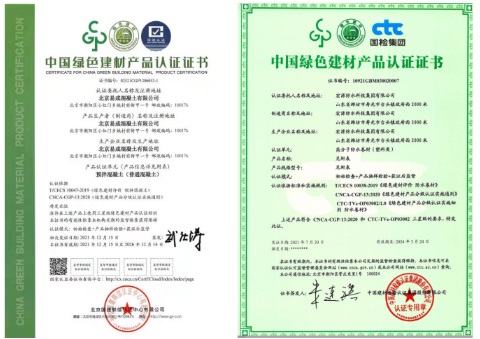 (中綠東岳府綠色建材產(chǎn)品認證證書)