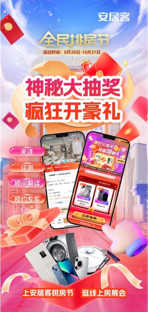 隨著58同城、安居客“2024全民挑房節(jié)”進入收官倒計時,我們誠摯地邀請廣大購房者抓住最后的機會,積極參與“神秘大抽獎”活動,享受購房優(yōu)惠,贏取豪華大獎。安居客平臺將繼續(xù)秉持專業(yè)、高效、貼心的服務(wù)理念,為廣大購房者和房企提供優(yōu)質(zhì)服務(wù),助力每一位購房者實現(xiàn)安居夢想。