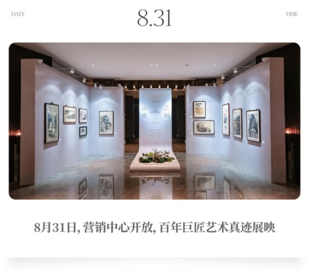 8月31日,營銷中心開放,百年巨匠藝術真跡展映;