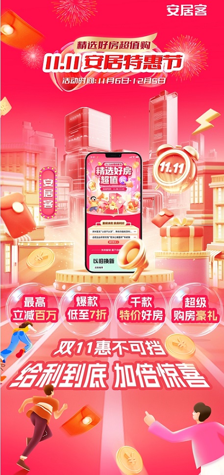 安居客一直以來都秉持著為客戶提供最優(yōu)質(zhì)房產(chǎn)服務的理念,致力于成為購房者的貼心伙伴。從海量的房源信息篩選,到專業(yè)的購房指導與建議,再到貼心的一站式服務,我們始終以客戶的需求為導向,用心為每一位購房者打造專屬的安居方案。此次“11.11安居特惠節(jié)”,安居客不僅為購房者帶來了實實在在的優(yōu)惠和便利,也為房地產(chǎn)市場的穩(wěn)定發(fā)展注入了新的活力。