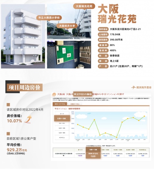 近期,多校加持精品公寓“大阪瑞光花苑”重磅上線,目前全球發(fā)售中,并且非常匹配想通過買房來辦理辦理經(jīng)營管理簽證的需求。據(jù)了解,該項目位于大阪市東淀川區(qū)瑞光四丁目,處于成熟住宅區(qū), 周邊配套設(shè)施齊全,步行4分鐘可達(dá)瑞光四丁目站,半小時通勤圈可達(dá)新大阪、梅田等商業(yè)區(qū)。項目房價穩(wěn)定,該區(qū)域房價對比2022年4月房價漲幅達(dá)10.07%。