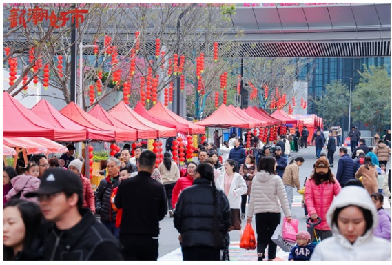華焱智慧城市總經(jīng)理陳垚也在致辭中表示,星河雙塔迎春花市的開幕,將為市民群眾營造濃郁年味,帶動春節(jié)經(jīng)濟,也為市民群眾打造新的網(wǎng)紅打卡點。