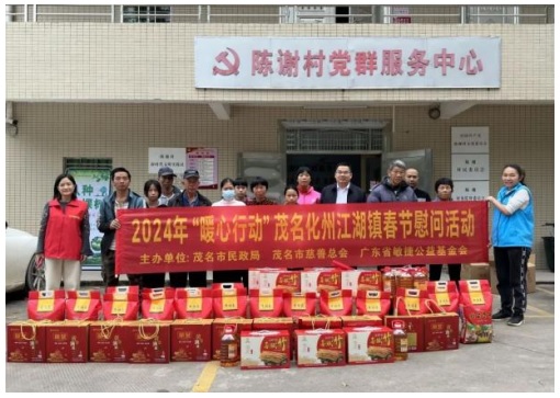 春節(jié)前夕,在廣東省慈善總會的指導下,敏捷集團、敏捷公益基金會攜手茂名市民政局、市慈善總會在化州市江湖鎮(zhèn)開展2024年“暖心行動”春節(jié)慰問活動,為當?shù)氐褪杖肜Ь臣彝ニ腿ノ繂柦稹⑿麓憾Y包和真摯的節(jié)日祝福。