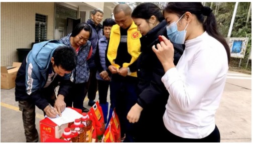 當天上午,志愿者首先來到江湖鎮(zhèn)陳謝村委,為部分代表家庭發(fā)放禮包。村民代表們早早就來到了村委會門口,志愿者們在現(xiàn)場張羅著大家排隊,等待著慰問活動的開始。這次活動除了為大家準備了大米、食用油、腐竹、年糕、食鹽等生活物資,還有慰問金。當村民接過物資時都連聲道謝,祝福新年快樂,大家笑容滿面,充滿了節(jié)日的歡樂氣氛。