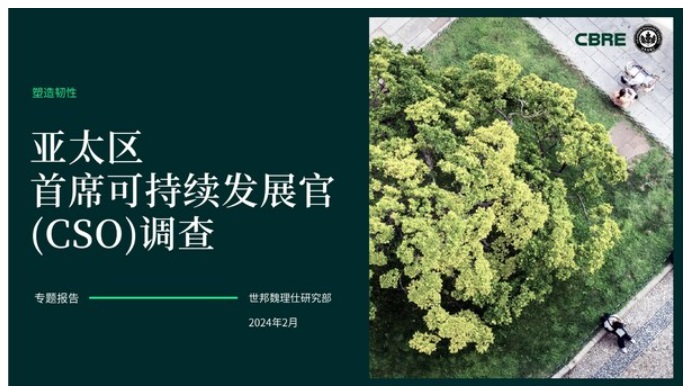 CBRE世邦魏理仕發(fā)布《亞太區(qū)首席可持續(xù)發(fā)展官(CSO)調(diào)查》:超六成受訪者表示,未來三年內(nèi)增加其投資組合中綠色建筑的占比至80%或以上