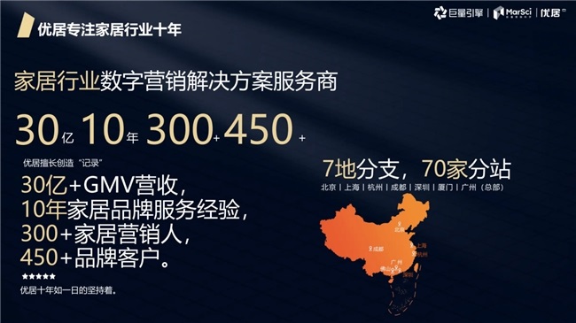 優(yōu)居作為國內(nèi)領(lǐng)先的營銷數(shù)字化服務(wù)商,具備超10年的家居品牌服務(wù)經(jīng)驗,以IP+內(nèi)容+流量+工具為核心,為企業(yè)提供高效的全鏈路數(shù)字營銷服務(wù),累計合作品牌客戶超3000家。