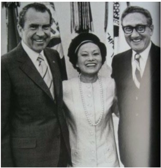 陳香梅女士被尼克松任命為亞洲事務(wù)顧問(左:尼克松,中:陳香梅,右:基辛格)