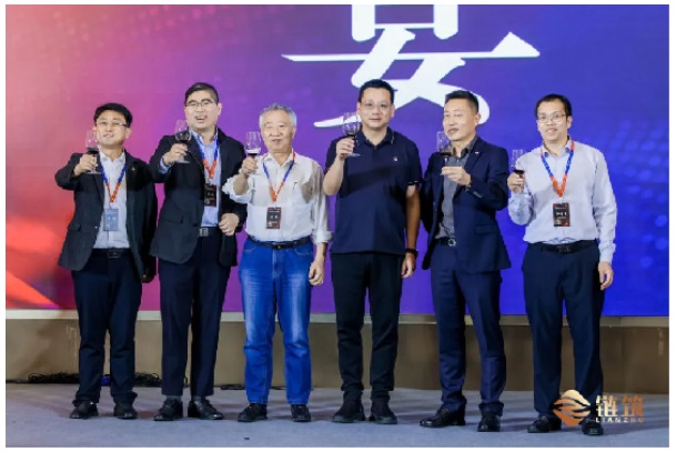 住建部市場監(jiān)管司原副司長劉哲先生;德國貝朗(中國)副總裁楊磊先生;鏈筑分會副秘書長、華南區(qū)秘書長李守飛先生;鏈筑分會副秘書長、華東區(qū)秘書長鮑磊先生;鏈筑分會副秘書長張旭先生與馬學明秘書長共同為華南站論壇答謝晚宴祝酒。