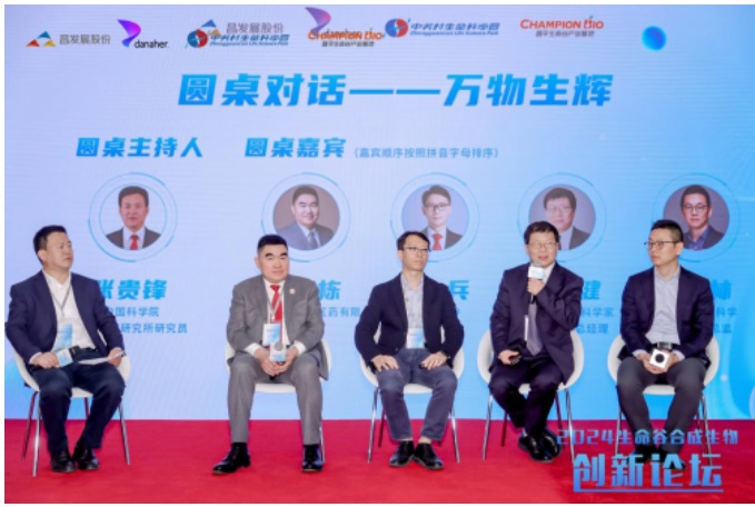 圓桌對(duì)話環(huán)節(jié)邀請(qǐng)到了中國(guó)科學(xué)院過(guò)程工程研究所研究員張貴鋒擔(dān)任圓桌環(huán)節(jié)主持人,多美康生物CEO郭志棟,佰仁醫(yī)療首席科學(xué)家、艾佰瑞生物總經(jīng)理吳康健,昌科金ED呂兵,丹納赫生命科學(xué)戰(zhàn)略市場(chǎng)總監(jiān)朱林,分別從企業(yè)家、投資人和平臺(tái)代表角度,共話“合成生物制造創(chuàng)新與發(fā)展應(yīng)用”。