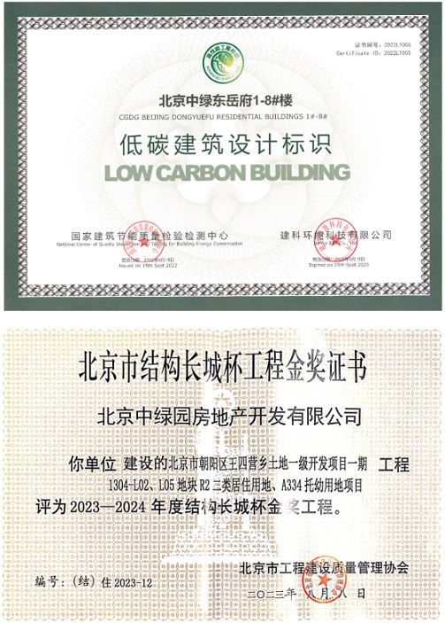 除了地段和名校資源之外,中綠東岳府的另一大核心價值是高標準住宅帶來的高宜居、高舒適居住體驗。該項目是北京首批高標準商品住宅之一,也是少有的滿分高標準住宅項目,其全面實施最高級別的三星級綠色建筑標準,健康建筑二星級標準、裝配式建筑AAA級,超低能耗建面比例、健康建筑面積比例均達到100%,日常居住可節(jié)約90%的能耗,并因此獲得低碳、近零碳建筑雙認證等一系列嚴苛認證,此外,項目還榮獲北京市結構長城杯金獎,該獎項是北京市建設工程質(zhì)量最高榮譽獎,含金量極高,充分表明中綠東岳府的工程結構質(zhì)量優(yōu)質(zhì)可靠。