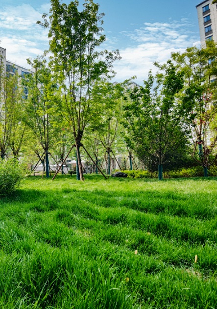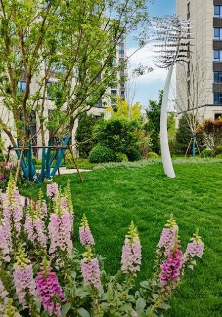 為確保園林品質,中綠東岳府全部引種高端成樹,如觀棠主題區(qū)引種來自北美胸徑可達20公分的亞當海棠,棲霞區(qū)樹齡達50年的叢生蒙古櫟、造價達十幾萬叢生元寶楓、16棵從加拿大引種的銀紅槭以及寓意健康長壽的黃櫨等,營造出四季有景,一步一景的自然生活狀態(tài)。