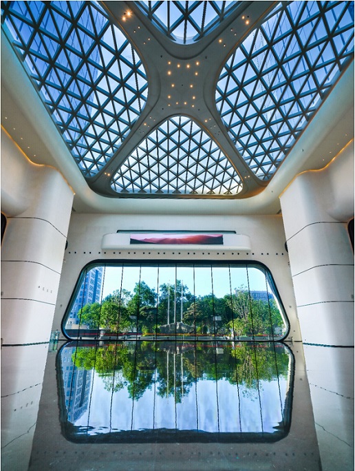 樓宇外觀是另一個(gè)對企業(yè)形象有著舉足輕重影響的要素,出眾的視覺美感,不僅可以凸顯公司形象,在視覺上留下深刻印象,還能兼顧實(shí)用性,提升辦公體驗(yàn)。麗金智地中心采用了全玻璃幕墻外立面,其中標(biāo)準(zhǔn)辦公層選用4層半鋼化內(nèi)外雙夾膠單中空LOW-E半鋼化全超白玻璃,擁有極佳的通透感和視野感,整體建筑觀感立體,表現(xiàn)性極佳,地標(biāo)屬性鮮明。在實(shí)用性方面,麗金智地中心的幕墻立面隔熱性能遠(yuǎn)超混凝土,可最大程度減少能源消耗,同時(shí)可有效隔絕噪音及有害光線,為建筑內(nèi)人員提供舒適的辦公環(huán)境。