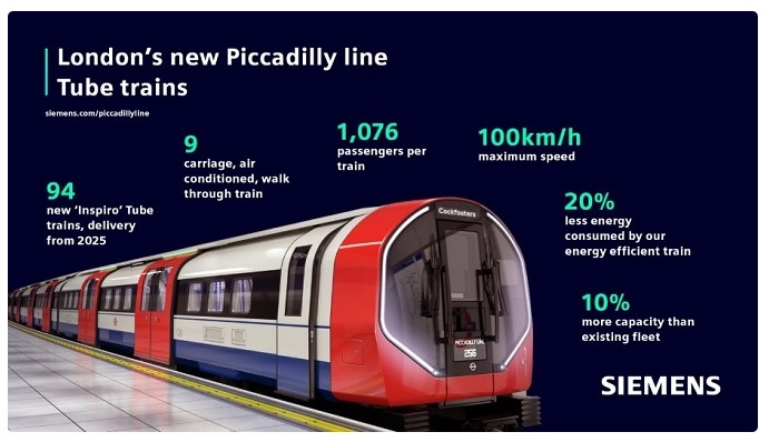 倫敦地鐵上有超過(guò)10%的旅程是在皮卡迪利線上進(jìn)行的,線路從北部的Cockfosters、West End、Hammersmith和阿克頓(Acton town),并分支到希思羅機(jī)場(chǎng)(Heathrow Airport)和Uxbridg/Rayners Lane,皮卡迪利線車廂的換新,將大大增強(qiáng)這條倫敦交通動(dòng)脈的活力。