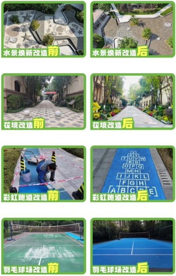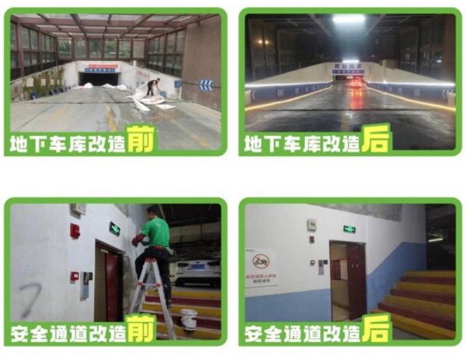 其中車庫出入口、地下室單元出入口等業(yè)主高頻動線關(guān)鍵觸點,邦泰物業(yè)總計完成180項翻新改造。以更科學(xué)、更完善的方式,助力社區(qū)美好煥新。