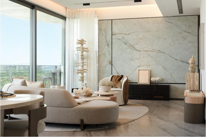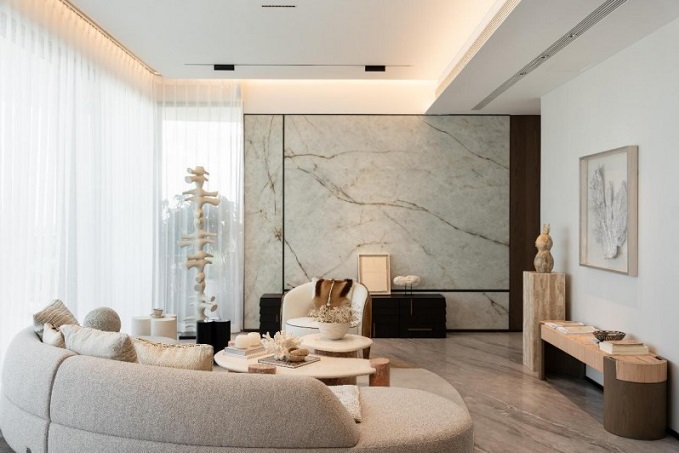 中旅·馥棠公館邀請國際新銳空間設(shè)計師肖正恒領(lǐng)銜主筆的萬相無形設(shè)計團隊,以當代的設(shè)計語境,進階空間審美與品味。190㎡【觀流】美學樣板以國際視野深度考究戶型布局和功能,全景敞開海棠灣國家海岸風景,打造每一處的生活臻境,輝映時代塔尖審美需求。
