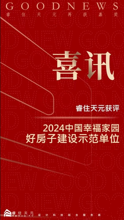 鑒于睿住天元在建設(shè)生態(tài)宜居城市、韌性城市、數(shù)字住建、完整社區(qū)建設(shè)、產(chǎn)學研融合發(fā)展等方面取得的系列成果,特別授予睿住天元“2024中國幸福家園好房子建設(shè)示范單位”稱號。