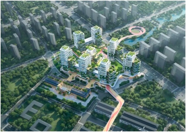 以科技、歷史、綠色為載體,通過嵌入多元復合功能板塊、綠色滲透打破自然與城市的界限、智慧社區(qū)底座數(shù)字化搭建等設(shè)計手法,打造產(chǎn)業(yè)融合、文脈傳承、居住升級、個性與品質(zhì)的復合社區(qū),符合新時代住房高質(zhì)量發(fā)展“適用、經(jīng)濟、綠色、美觀”的建筑方針。