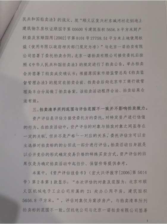 2007年2月1日,北京市順義區(qū)人民政府國有資產(chǎn)監(jiān)督管理委員會作出《關(guān)于北京順義區(qū)機械電子工業(yè)公司拍賣原天海公司資產(chǎn)清償區(qū)信用聯(lián)社債務(wù)的批示》,同意機電公司將天海公司資產(chǎn)進(jìn)行公開拍賣。