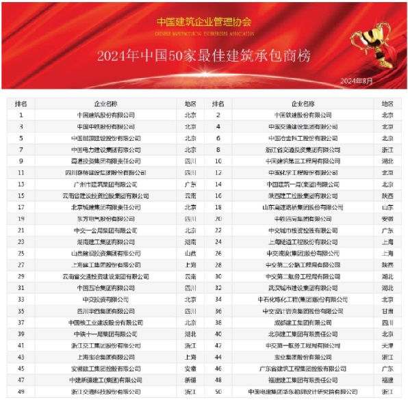 在經(jīng)濟(jì)發(fā)展的浪潮中,建筑業(yè)始終是國家建設(shè)的中流砥柱。近日,由中國建筑企業(yè)管理協(xié)會隆重發(fā)布的“2024年中國建筑業(yè)綜合實(shí)力100強(qiáng)榜暨中國50家最佳建筑承包商”,這不僅是對建筑企業(yè)的一次高度認(rèn)可,更是為行業(yè)發(fā)展樹立了新的標(biāo)桿。