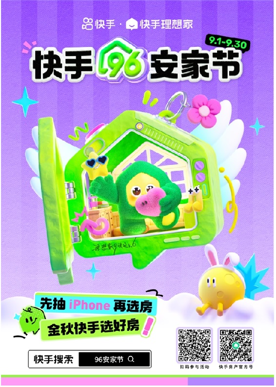 即日起,上快手搜索“96安家節(jié)”可進入活動頁面。期間,用戶向房產(chǎn)主播提交房產(chǎn)咨詢或購買意向、觀看房產(chǎn)類短視頻完成任務(wù)、分享鏈接邀請好友助力,都可獲得iPhone等獎品的抽獎機會。此外,完成線上選房、線下看房還有更多優(yōu)惠贈送。