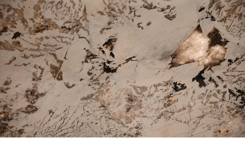 從現(xiàn)場外部看,大門奢華氣派,約73米的藝術(shù)門廊,約9米挑高尺度,璀璨星空頂借意“俊采星馳”,幻影藍(lán)花崗巖、普拉達(dá)綠奢石與愛馬仕灰大理石等多種奢石匠造,這不僅是建筑大門,更是一座藝術(shù)裝置。