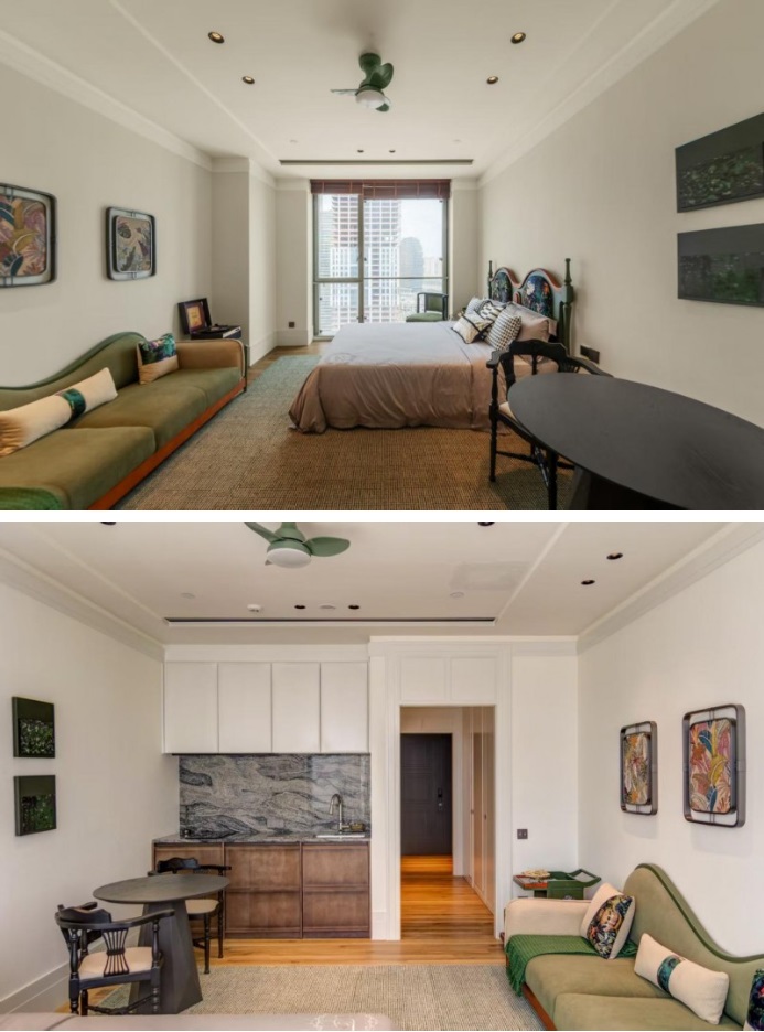 55㎡靈動(dòng)空間:3.6米層高,盡收澳門海城景觀;開放式廚房設(shè)計(jì)與嵌入式收納系統(tǒng),營造通透的生活場域,并有效擴(kuò)大儲物空間,讓生活有條不紊。