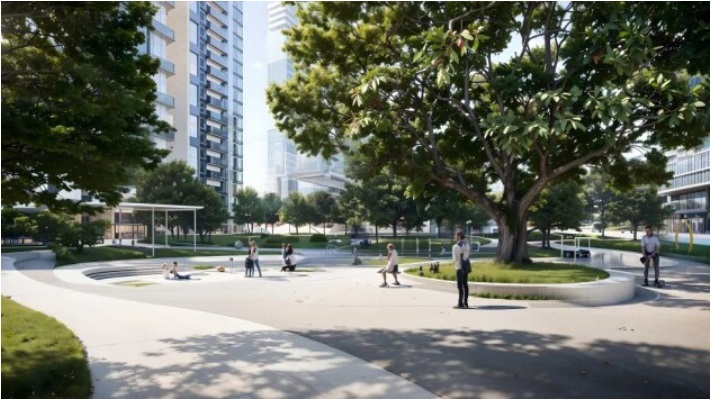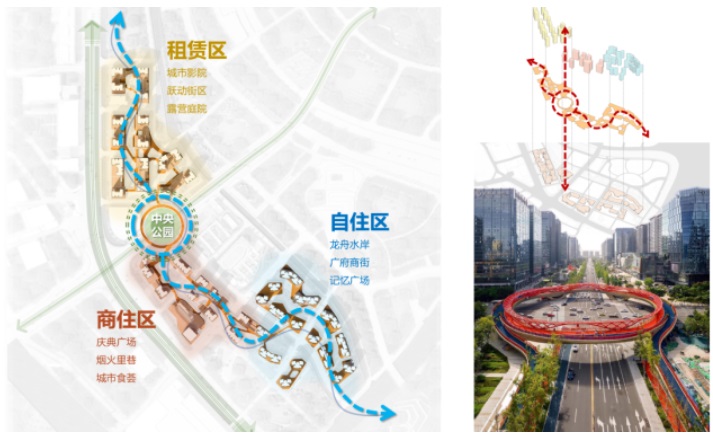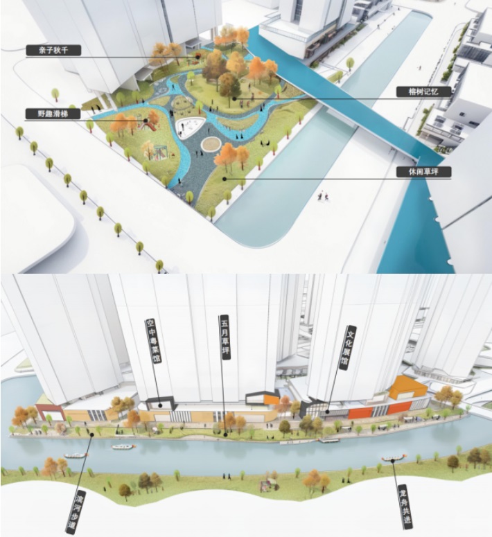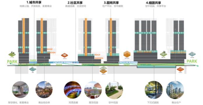 在租賃區(qū)、商業(yè)區(qū)和保障房住區(qū)構(gòu)建多個景觀節(jié)點,打造家園、公園、樂園一體的三園合一公園城市。