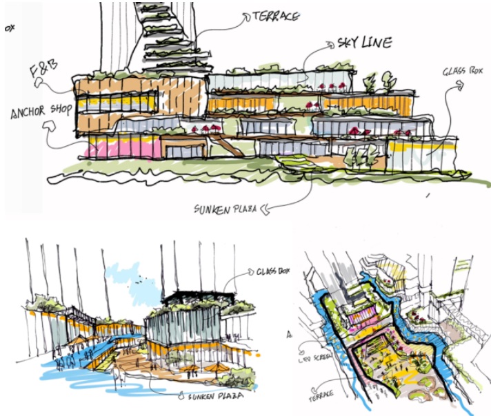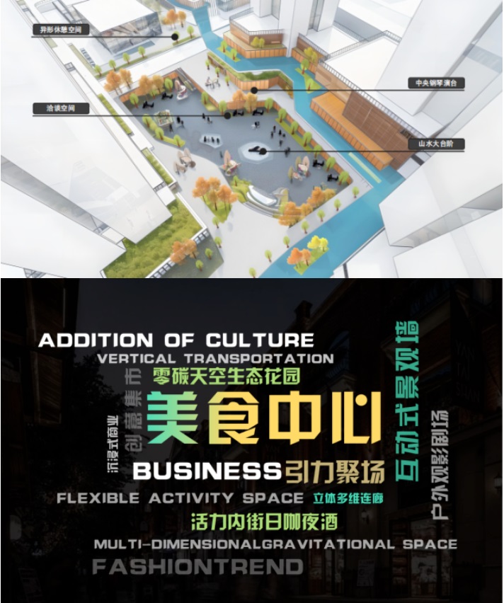 商住區(qū),我們則注重生活品質(zhì)與文化氛圍的營造,以美食中心為主題,構(gòu)建了一個集餐飲、休閑、娛樂于一體的綜合性商業(yè)空間。美食中心、日咖夜酒、生態(tài)花園等沉浸式活力街區(qū),滿足了人民日常精神及物質(zhì)的需求。