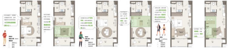 在設(shè)計過程中,我們深入研究了產(chǎn)品的靈活轉(zhuǎn)化與可變性,通過創(chuàng)新的設(shè)計手法,提供了多種拼合方案,實現(xiàn)了同一戶型在不同使用模式下的自如切換,使得小戶型在必要時能夠與其他單元無縫連接,形成更加寬敞、靈活的居住空間,實現(xiàn)小戶型空間的高效拼合利用。