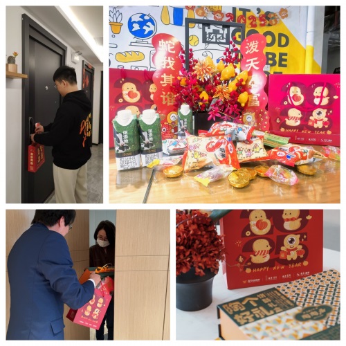 越秀星廷、越秀星寓、越秀星鄰工作人員和管家特別定制新春福袋,喜氣可愛的蛇年禮袋,“潑天富貴蛇我其誰”新春對聯(lián),承載祝福的賀卡,星星毛絨包掛,新年零食糖果,越秀旗下《聲生不息·大灣區(qū)季》冠名健康品牌謝添地牛奶.用心準備,只為親手給星友租戶們袋來好運,讓身處異鄉(xiāng)的星友租戶們也能感受家的溫暖。