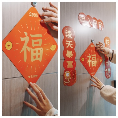 越秀星廷精心打扮美好星裝,粘春聯(lián)貼窗花,布置新年盆花,入門新春組景,懸掛蛇年拉花,裝扮紅包發(fā)財樹,用心營造新年浪漫,祈愿每一位星友租戶們,都能在新的一年里被好運與幸福緊緊圍繞。
