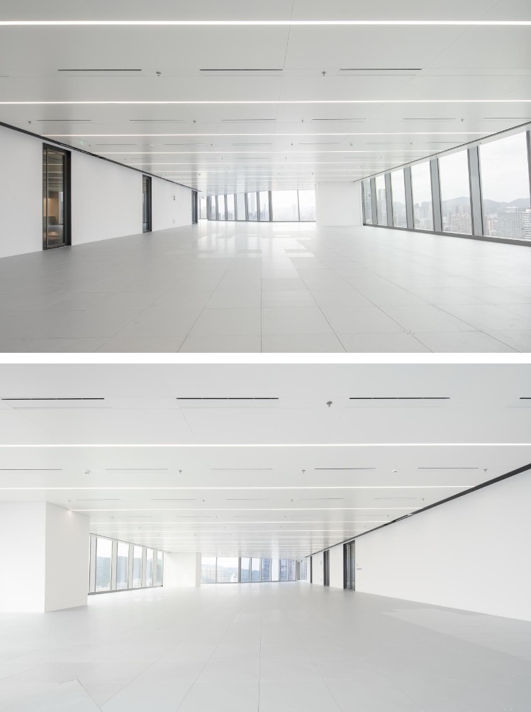 對于內部空間的營造,更是構建了匹配企業(yè)多元化的科學布局,建面約300-3400㎡全面積段,精裝和交標可供客戶自主選擇;無柱式的設計,最長32米無遮擋玻璃幕墻,采用三層中空Low-E超白玻璃幕墻,高效隔音降噪的同時,最大化映現(xiàn)山與城的繁華窗景,匹配企業(yè)的無限襟懷;